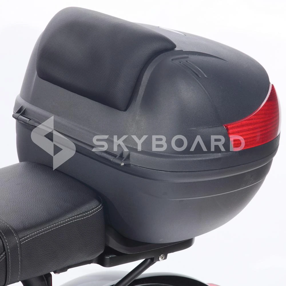 Модель оснащена специальным отсеком для личных вещей по типу багажника, который является съемным и располагается в задней части электромопеда. Бардачок отлично пододойдет для документов, бумажника и других мелких, но необходимых вещей.