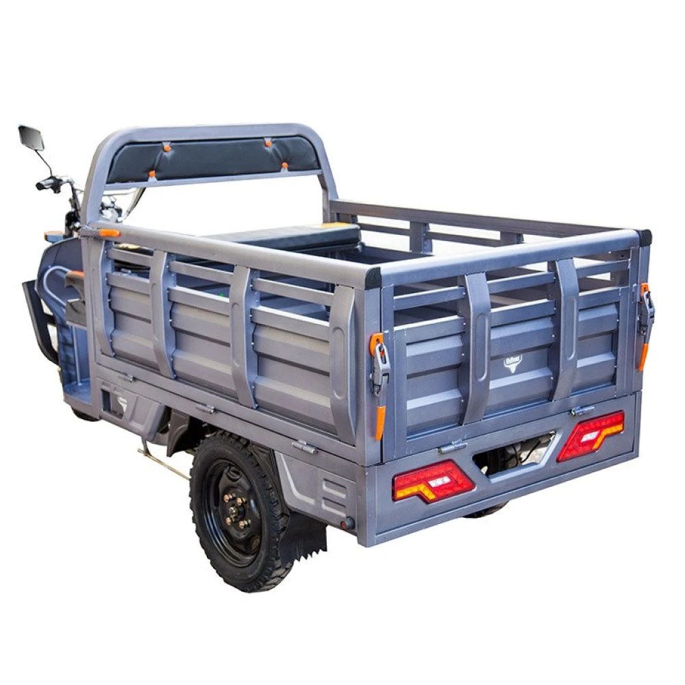 Этот грузовой электротрицикл Rutrike имеет вес 270 кг и грузовой отсек, который обеспечивает безопасную и удобную перевозку различных товаров. Его электромотор позволяет с комфортом доставлять грузы в любом направлении.