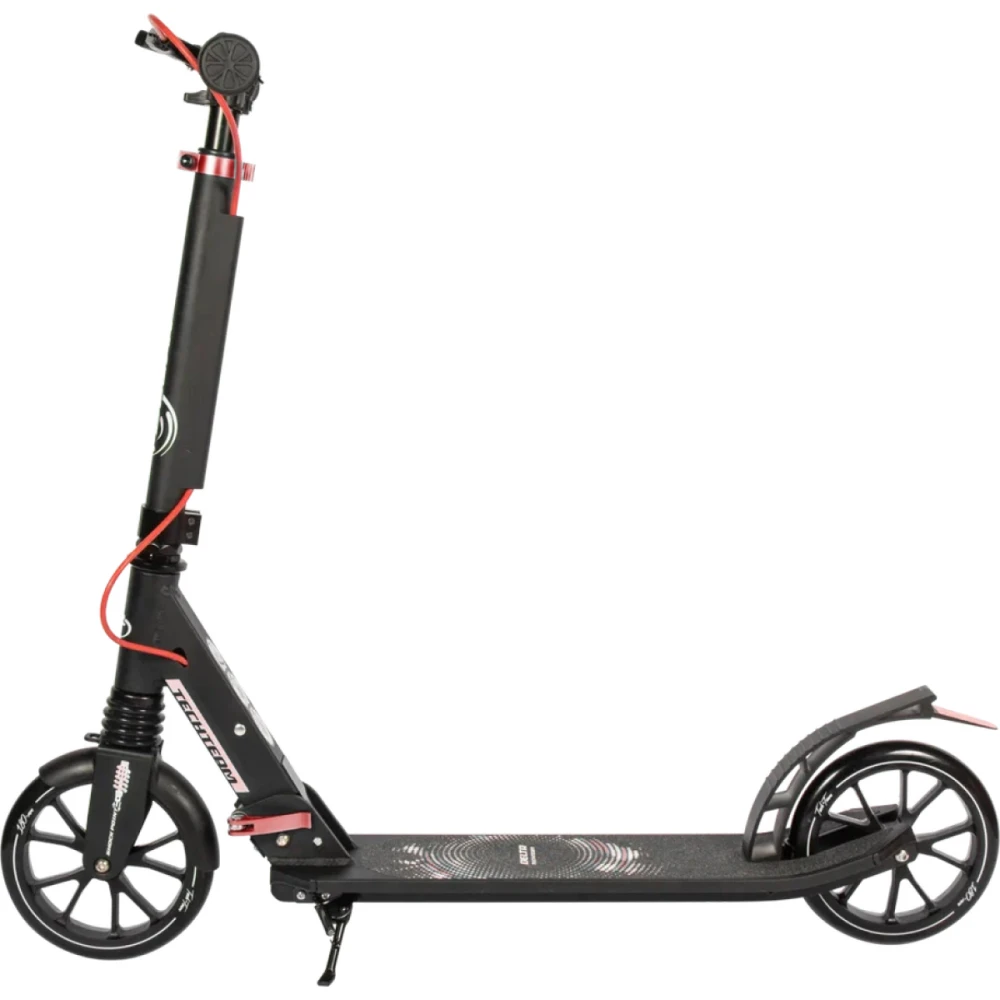 Удобная рулевая часть регулируется в трёх положениях - 750-820-890 мм, имеет широкий зажим, благодаря которому исключается люфт, являющийся главным источником посторонних шумов. Колесная часть – полиуретановая, мало стираемая, размерами 180 мм с подшипниками ABEC 7 Chrome. В сочетании с брендовой тормозной системой гарантирует безопасность, своевременность остановки и массу приятных впечатлений.